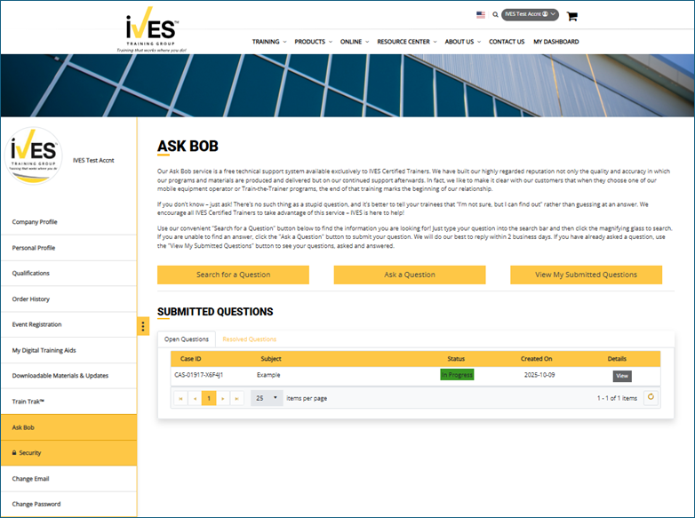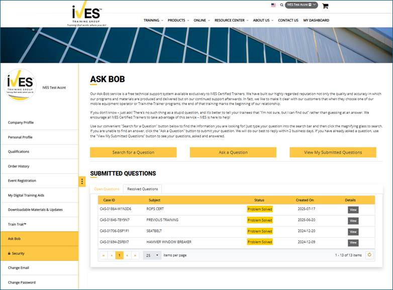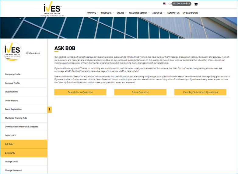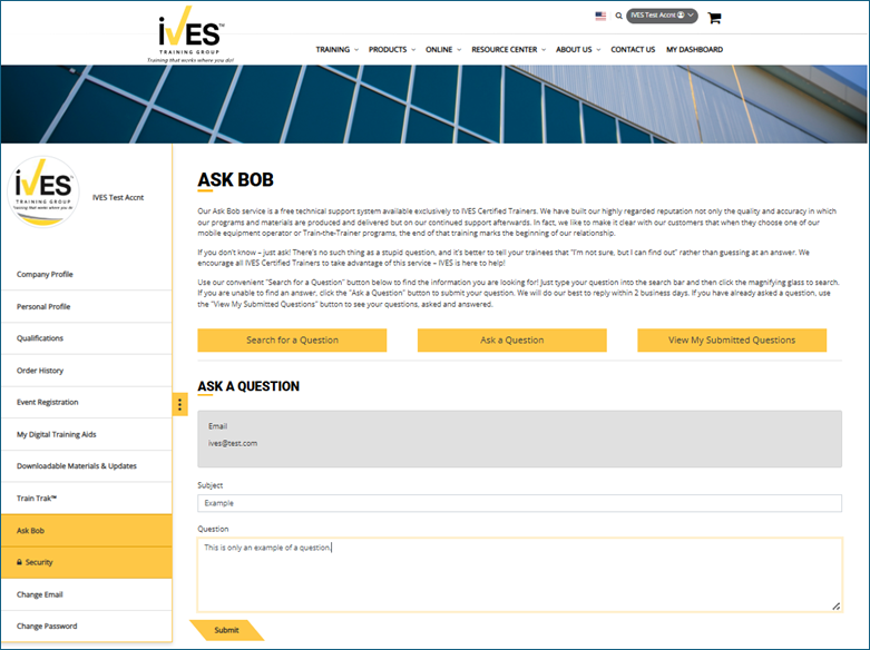 Now, when you go to Ask Bob, you have a choice to search for questions that Bob has previously answered, or view questions you’ve submitted, and of course, ask a new question.